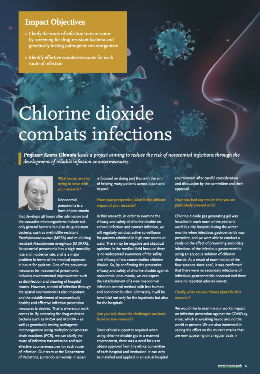 英国 Science Impact 社が発行している科学情報誌 Impact に順天堂大学浦安病院小児科 大日方薫教授の“二酸化塩素による院内感染予防の有用性”についての紹介記事が掲載されました